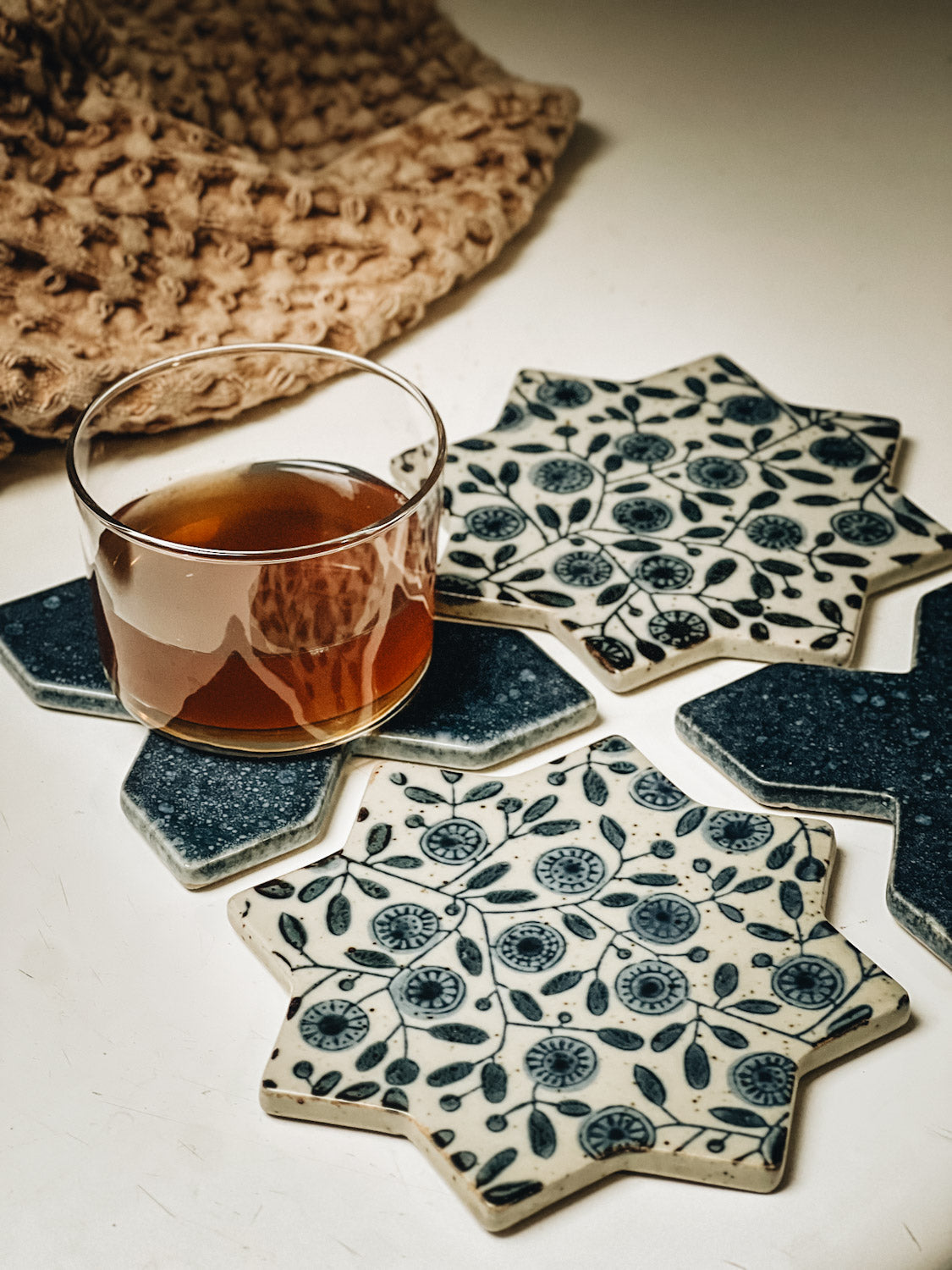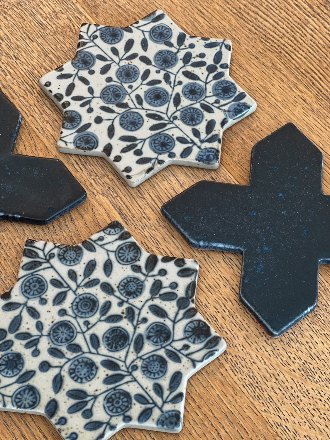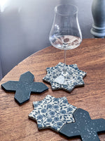Interlocking stoneware coasters in a set of 4. A stunning and unique way to protect your table tops, impress your guests, and have fun playing with all the ways they connect.