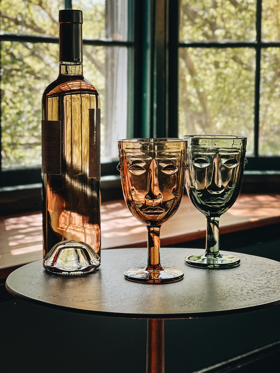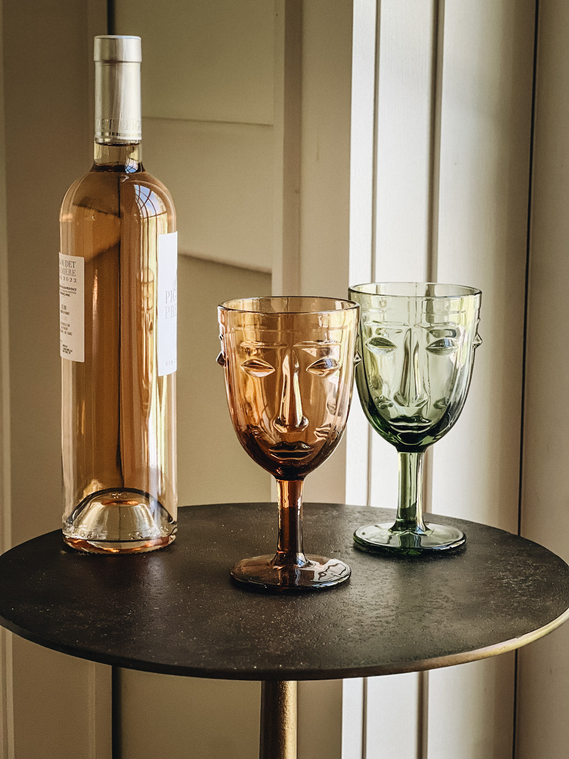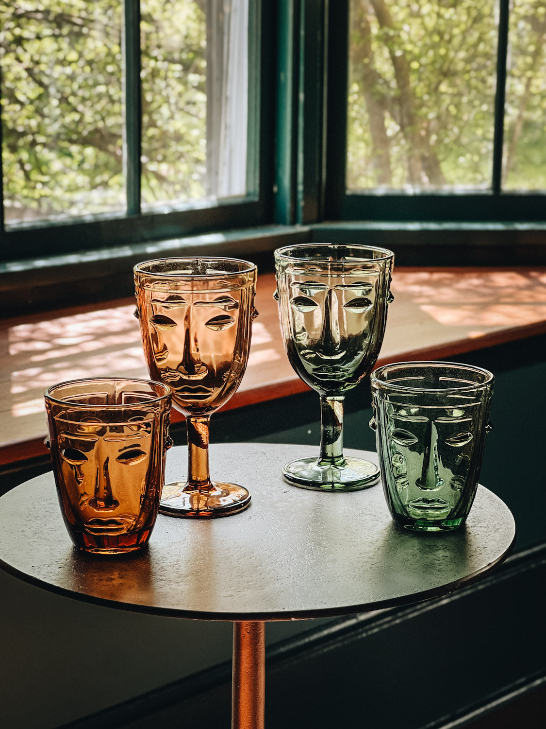You'll never drink alone again with a set of these sturdy and sustainably made goblets crafted by hand in France. Invite these unflappably faced friends to the party and toast to la belle vie in attractive shades of amber and green.